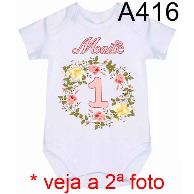 Body Roupa de Bebê Personalizado Mesversário Flores Floral A416