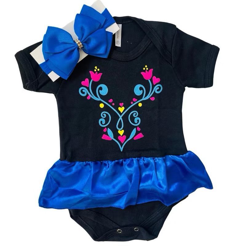 Body + Saia + Tiara Bebê Fantasia Mesversario Menina ELSA e ANNA - FROZEN