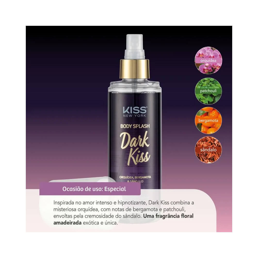BODY SPLASH DARK KISS KISS NEW YORK 200ML ========================================= O Body Splash Dark Kiss da Kiss New York oferece uma fragrância refrescante e sofisticada, ideal para o uso diário. Com notas de orquídea, bergamota e sândalo, proporciona uma experiência olfativa única. A combinação de notas florais e amadeiradas torna a fragrância do Body Splash Dark Kiss envolvente e sofisticada. A vitamina E presente na fórmula mantém sua pele hidratada e macia durante todo o dia. Desfrute de um toque de frescor e cuidado contínuo com cada aplicação. FRAGRÂNCIA FLORAL E AMADEIRADA A combinação de notas florais e amadeiradas torna a fragrância do Body Splash Dark Kiss envolvente e sofisticada. HIDRATAÇÃO E SUAVIDADE PROLONGADAS A vitamina E presente na fórmula mantém sua pele hidratada e macia durante todo o dia. Desfrute de um toque de frescor e cuidado contínuo com cada aplicação. MODO DE USO =========== Aplique o Body Splash Dark Kiss diretamente sobre a pele ou roupas para uma experiência refrescante. Use em áreas como pescoço, pulsos e atrás das orelhas para um aroma mais duradouro. Antes de aplicar, agite o frasco gentilmente para garantir a mistura homogênea dos ingredientes. Mantenha o frasco a uma distância de cerca de 15 cm da pele antes de borrifar. Pulverize levemente sobre a pele, focando em áreas como pulsos e pescoço para maximizar o aroma. Deixe o produto secar naturalmente na pele, sem esfregar, para melhor fixação e efeito. AGITE O FRASCO Antes de aplicar, agite o frasco gentilmente para garantir a mistura homogênea dos ingredientes. DISTÂNCIA DE APLICAÇÃO Mantenha o frasco a uma distância de cerca de 15 cm da pele antes de borrifar. PULVERIZE Pulverize levemente sobre a pele, focando em áreas como pulsos e pescoço para maximizar o aroma. SECAGEM Deixe o produto secar naturalmente na pele, sem esfregar, para melhor fixação e efeito. CARACTERÍSTICAS E BENEFÍCIOS DO BODY SPLASH DARK KISS ===================================================== O Body Splash Dark Kiss combina frescor contínuo com cuidado para a pele, perfeito para uso diário. Sua fórmula vegana é livre de parabenos e não testada em animais. A fórmula vegana, sem parabenos, garante um cuidado seguro para todos os tipos de pele. Composta por bergamota, chá, jasmim, orquídea, patchouli, musk, vanilla e sândalo, criando um aroma único. Proporciona uma sensação refrescante que perdura ao longo do dia inteiro, mantendo você perfumado. Equipado com spray que permite aplicação uniforme em pontos estratégicos do corpo. VEGANO E LIVRE DE PARABENOS A fórmula vegana, sem parabenos, garante um cuidado seguro para todos os tipos de pele. PIRÂMIDE OLFATIVA EXCLUSIVA Composta por bergamota, chá, jasmim, orquídea, patchouli, musk, vanilla e sândalo, criando um aroma único. FRAGRÂNCIA DURADOURA Proporciona uma sensação refrescante que perdura ao longo do dia inteiro, mantendo você perfumado. FÁCIL APLICAÇÃO Equipado com spray que permite aplicação uniforme em pontos estratégicos do corpo. ESPECIFICAÇÕES TÉCNICAS ======================= O produto possui design elegante em plástico PET resistente, perfeito para qualquer ocasião. Um splash corporal ideal para uso diário ou eventos especiais. Capacidade: 200 ml Notas Olfativas: Orquídea, Bergamota, Sândalo Composição: Enriquecido com Vitamina E Material do Frasco: Plástico transparente Tipo de Produto: Body Splash SOBRE A MARCA KISS NEW YORK =========================== A Kiss New York é reconhecida por suas fragrâncias sofisticadas e acessíveis, trazendo qualidade e inovação. Com produtos desenvolvidos com rigorosos padrões de qualidade, a marca atende a diferentes gostos e preferências. Produtos desenvolvidos com rigorosos padrões de qualidade para garantir a satisfação dos clientes. A marca investe continuamente no desenvolvimento de novas fragrâncias e produtos para surpreender os clientes. Foco em atender às necessidades e desejos dos consumidores com produtos acessíveis e de alta qualidade. QUALIDADE SUPERIOR Produtos desenvolvidos com rigorosos padrões de qualidade para garantir a satisfação dos clientes. INOVAÇÃO CONSTANTE A marca investe continuamente no desenvolvimento de novas fragrâncias e produtos para surpreender os clientes. COMPROMISSO COM O CLIENTE Foco em atender às necessidades e desejos dos consumidores com produtos acessíveis e de alta qualidade.
