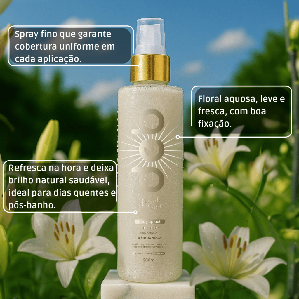 O Body Splash Iluminador Ipanema Glow 200ml Deborah Secco oferece fragrância feminina leve com efeito glow discreto, realçando a pele com brilho natural e elegante. Benefícios e Vantagens Perfume leve e agradável Brilho suave na pele Ideal para reaplicação Não oleoso Diferenciais Efeito glow delicado Fragrância feminina moderna Fácil aplicação Indicação de Uso Aplicar diretamente sobre a pele e espalhar até completa absorção.