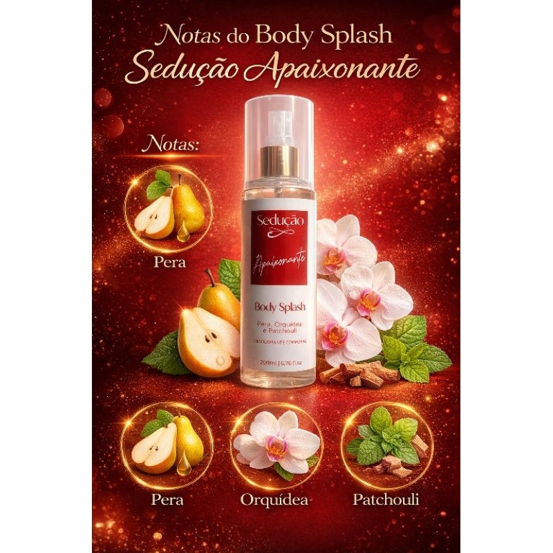 Body Splash Sedução Apaixonante 200ml – Pera, Orquídea e Patchouli Fragrância Doce e Sofisticada