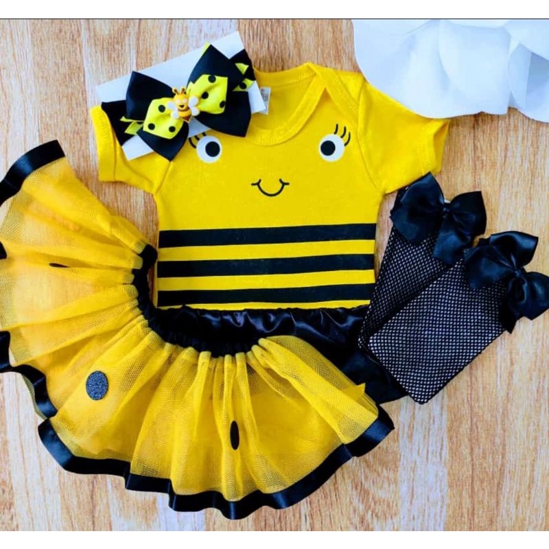 Body Abelhinha com laço e saia de tule ***VERIFICAR NA HORA DA COMPRA SE ESCOLHEU A VARIAÇÃO CORRETA COM OS ACESSÓRIOS QUE DESEJA ****** Tecido Suedine 100% algodão 📍Todos os acessórios são opcionais e vendidos separadamente. Tabela de medidas: P veste de 0 a 3 meses M veste de 4 a 7 meses G veste de 8 a 12 meses ⚠️Essa tabela serve apenas como sugestão, visto que cada bebê tem seu biotipo, ganho de peso e crescimento! OBSERVAÇÃO SAIA DE TULE E LAÇO PODEM VARIAR CONFORME ESTOQUE, MAS SEMPRE IRÁ DA COR COMBINANDO COM O TEMA