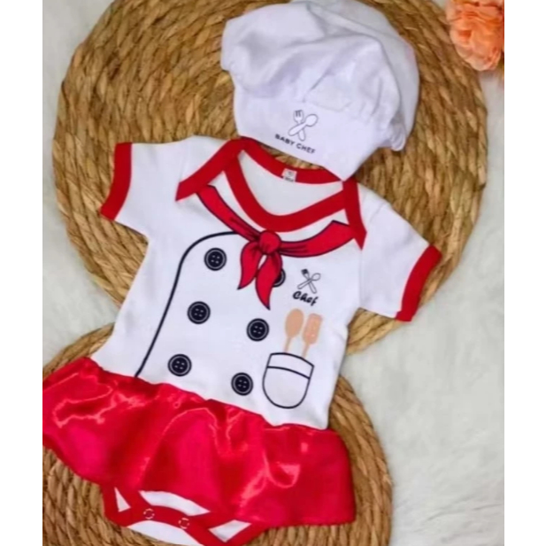 Body temático Cozinheiro Tecido: 100% Algodão Guia de tamanhos: P - VESTE DE 0 A 3 MESES (Alt: 38 cm - Larg: 22 cm) M - VESTE DE 4 A 7 MESES (Alt: 40 cm - Larg: 24 cm) G - VESTE DE 8 A 12 MESES (Alt: 42 cm - Larg: 26 cm)