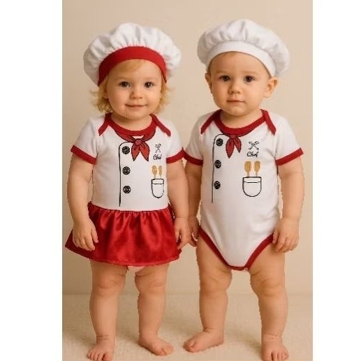 Body Temático Mesversário BabyChef Cozinheiro + Boina