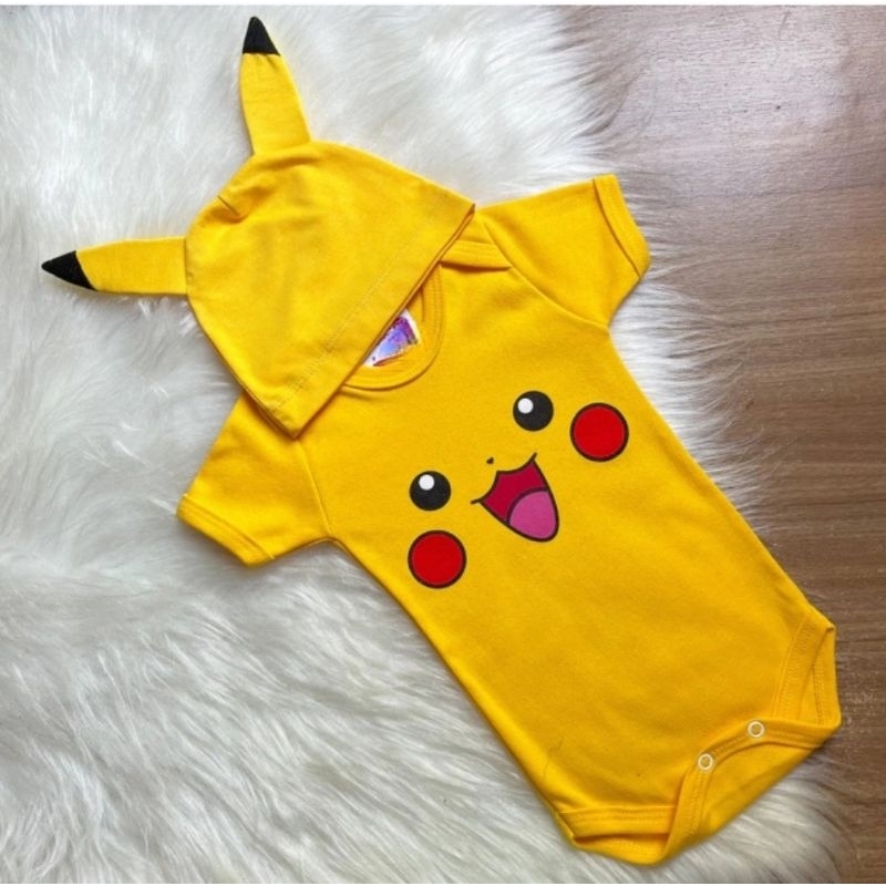 Body Temático Pikachu,acompanha a touca,bebê do P ao G,mesversário