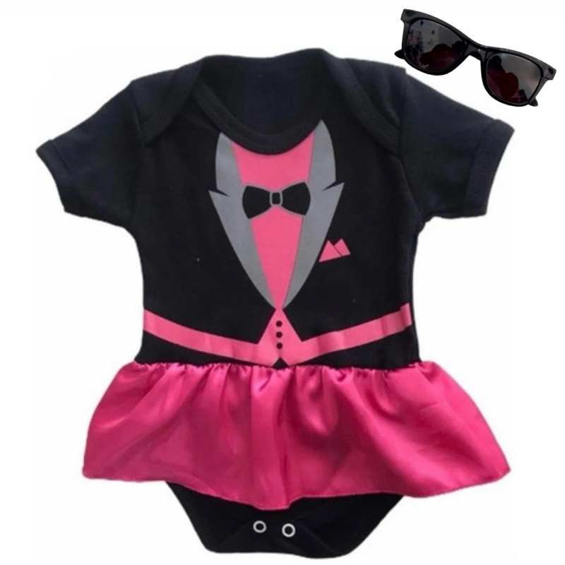 Body Temático Poderosa Chefinha com opção de óculos, laço, saia de tule, meia e tênis, bebê mesversário do P ao G.