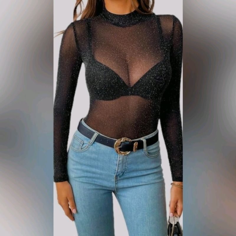 O brilho que valoriza qualquer produção. Feito em tule com fios de lurex e alta elasticidade, este body entrega efeito segunda pele confortável, com caimento que acompanha o corpo — agora com abrangência de tamanho até o GG (veste aprox. 36 a 46). Destaques que vendem ✨ Lurex com brilho sofisticado (toque macio, não pinica) 👗 Modelagem ajustada que valoriza as curvas (P ao GG) 🔒 Fecho inferior com botões de pressão 🧵 Costuras reforçadas e caimento leve 🌙 Perfeito para balada, shows e Body Tule Lurex Feminino – Brilho Elegante, Manga Longa, Segunda Pele – Tamanho Único (veste P ao GG) fashion Especificações Material: Tule com Lurex + Elastano Transparência: alta (recomendado uso com top/forro) Manga: longa | Gola: redonda Conteúdo da embalagem: 1 (um) body Tamanho & Caimento Tamanho Único – veste P ao GG (36–46) graças à elasticidade do tecido. Dúvida de caimento? Chame no chat que ajudamos a escolher. Como combinar Use com top/bralette por baixo e componha com blazer, jaqueta, calça de alfaiataria, jeans, saias ou couro. Cuidados Lavar à mão com sabão neutro; não alvejar; não secar em máquina; não passar ferro sobre o lurex; secar à sombra. Importante: não acompanha sutiã/top – envio somente do body.