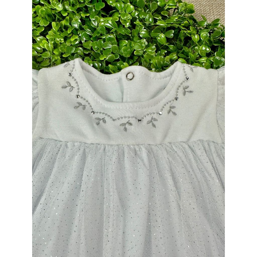Body vestido bebê com tule glitter festa batizado 100% algodão