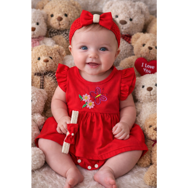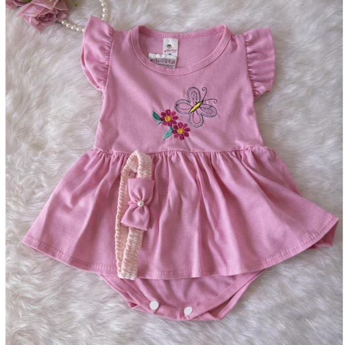 Body Vestido Sainha para Bebê Menina com faixinha de cabelo – Recém-Nascida 0 a 3 Meses – Look Fofo