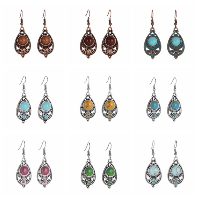 Boho Contas De Pedra Natural Brinco Para Mulheres Geométrico Ouro Prata Banhado A Gota De Água Brincos Vintage Moda Jóia