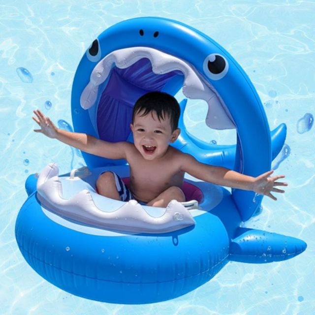 Boia bote inflavel para bebê infantil tubarão com cobertura