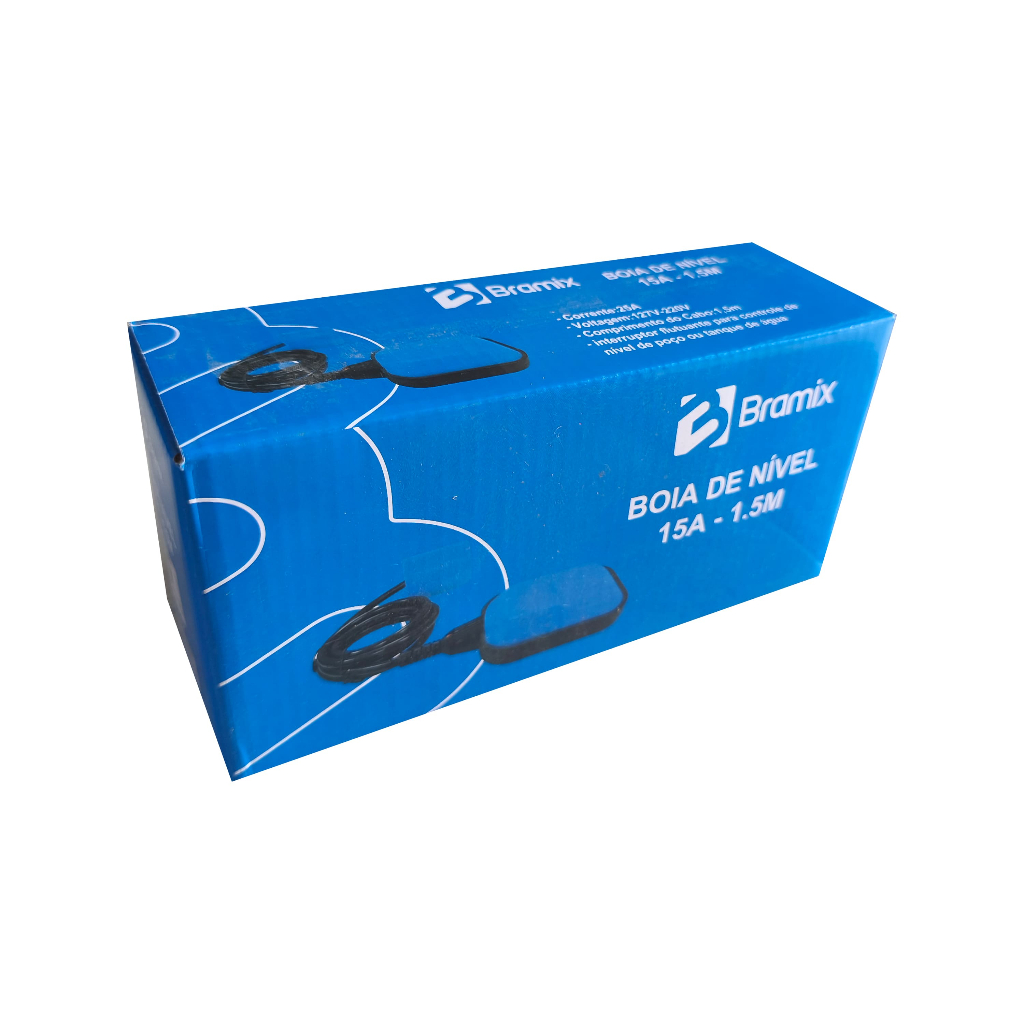 A Boia de Nível Elétrica Bramix é a solução ideal para o controle automático do nível de água em caixas d’água, cisternas, reservatórios e poços. Fabricada com materiais resistentes e de alta durabilidade, garante segurança, economia e praticidade no acionamento de bombas e sistemas elétricos. Seu funcionamento automático evita transbordamentos e protege a bomba contra funcionamento a seco, proporcionando maior vida útil ao equipamento e reduzindo desperdícios. Principais Vantagens: ->Controle automático do nível de água ->Evita transbordamento e falta de água ->Protege a bomba elétrica ->Alta resistência e longa durabilidade ->Fácil instalação ->Ideal para uso residencial, comercial e industrial Especificações: ->Marca: Bramix ->Tipo: Boia de nível elétrica ->Aplicação: Caixa d’água, cisterna, poço e reservatórios ->Funcionamento: Liga/desliga automático conforme o nível da água ->Corrente máxima: 15A ->Cabo elétrico: 1,5 metros ->Modelo bivolt: 127V / 220V ->Potência:3/4 HP – 127V ~ 60Hz/1,5 HP – 220V ~ 60Hz ->Grau de proteção: IP68 ->Temperatura de operação: 0ºC a 80ºC Conteúdo da Embalagem: - 1 Boia de Nível Elétrica Bramix. Benefícios de comprar conosco: -> Qualidade e Custo Benefício ->Suporte Pós-Vendas -> Vendedor Indicado ->Produtos Originais -> Envios Para Todo Brasil -> Atendimento Personalizado ->Pedidos feitos até as 11hrs: Envio mesmo dia ->Pagamento Seguro