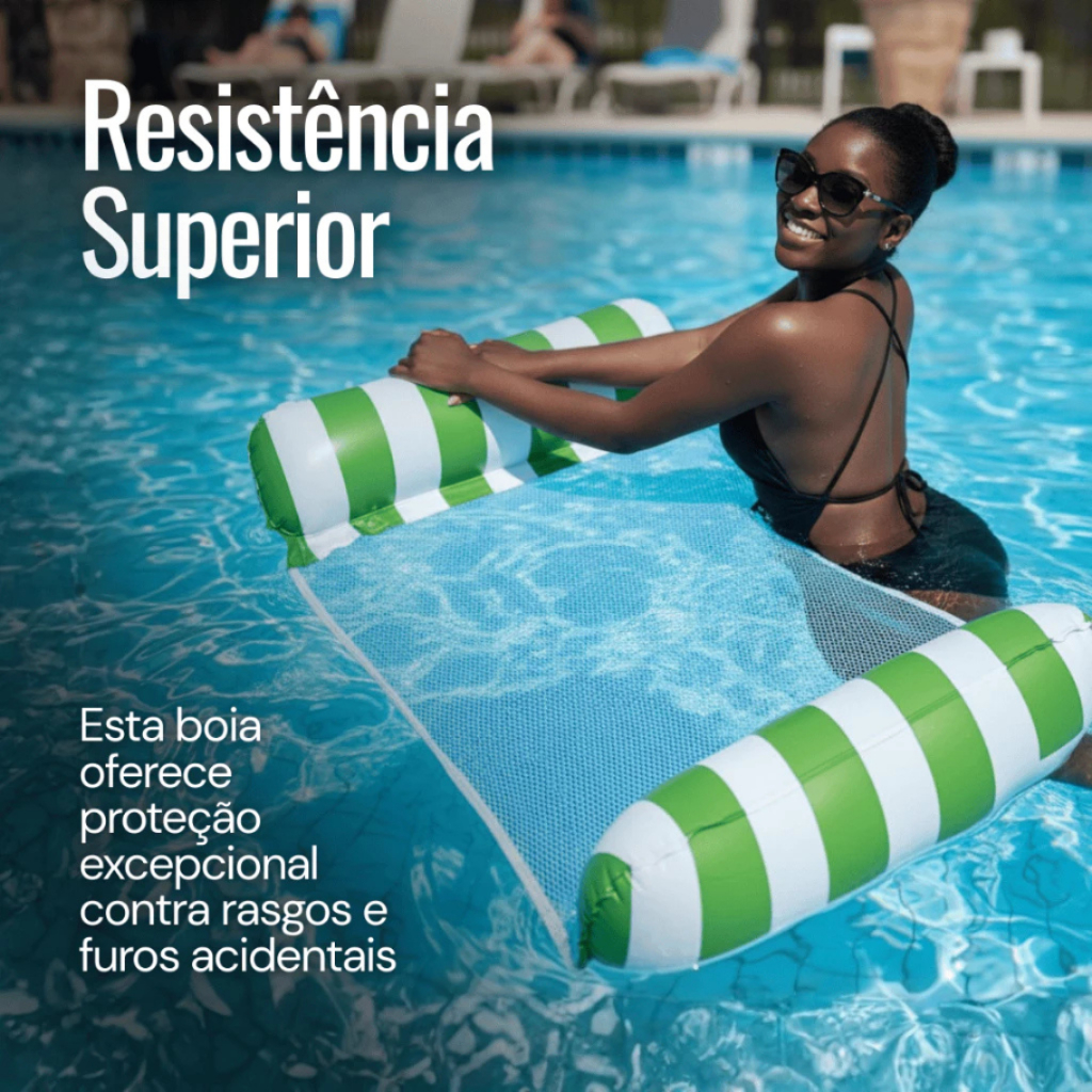 Boia Cama de Rede Inflável Premium para Piscina - Conforto e Relaxamento Garantido! ☀️ Transforme seus momentos de lazer na piscina com a nossa Boia Cama de Rede Flutuante! O design inovador combina a flutuação de uma boia com o relaxamento de uma rede, proporcionando a experiência perfeita de deitar e se refrescar. ✨ Por Que Escolher Nossa Boia de Rede?Relaxamento Total: Desfrute de um bronzeado perfeito ou de um cochilo suave enquanto flutua. O tecido de rede de alta qualidade mantém seu corpo parcialmente submerso para um frescor contínuo. Vedação Superior: Com excelente vedação, o ar permanece dentro! É fácil de inflar e desinflar, sem causar cansaço e sem risco de vazamentos. Material Premium: Fabricada em PVC durável e de alta qualidade. Não deforma facilmente, garantindo longas temporadas de diversão. Portabilidade Máxima: Graças ao seu design dobrável e peso leve (aprox. 230g), ela ocupa pouquíssimo espaço quando vazia. Leve a sua boia para qualquer viagem ou piscina!📋 Detalhes do Produto e Especificações: Tipo de Item: Cama de Rede Inflável / Boia Flutuante Material: PVC Tamanho (Inflada): 120x80cm Peso Aproximado:150g 🌈 Cores Vibrantes Disponíveis :Listradas (Cores do Enchimento): Azul Claro, Azul Escuro, Amarelo, Laranja, Verde, Rosa (Selecione a sua cor favorita!) ⚠️ Avisos Importantes para o Uso Piscina Aconselhada: Esta boia é ideal para uso em piscinas. Não aconselhamos o uso em águas abertas (praia ou mar) devido às correntes .Supervisão Infantil: O produto pode ser usado por adultos e crianças. No entanto, o uso por crianças deve ser SEMPRE acompanhado e supervisionado por um adulto. Sua segurança é nossa prioridade!