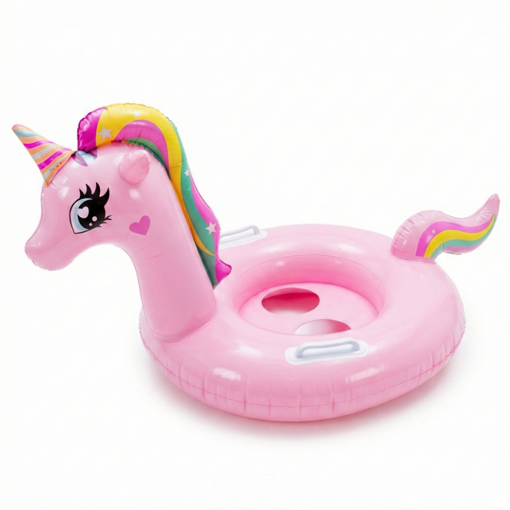 Atenção: A boia deve ser SEMPRE usada com a Presença de um adulto, SEMPRE supervisionando a criança. Personagem: Unicórnio Mágico (Design exclusivo). Faixa Etária: Recomendado para crianças de 2 a 12 anos. Capacidade de Carga: Suporta até 40kg com máxima segurança. Material: Vinil reforçado atóxico. Segurança: Assento com abertura para pernas e base estável. Segurança: Com alça para criança segurar. Dimensões: Tamanho ideal para flutuação e equilíbrio infantil. Feita em PVC premium de alta durabilidade, esta boia para piscina possui válvulas de enchimento rápido, sendo muito prática para transportar em viagens de férias. Seja para relaxar ou brincar, este unicórnio inflável proporciona o conforto necessário para que os pequenos se sintam confiantes enquanto flutuam, tornando-se o presente de verão perfeito para meninos e meninas. Transforme o dia de sol em um momento mágico com a Boia Infantil Unicórnio , o acessório de piscina que é o verdadeiro desejo das crianças. Desenvolvida para unir diversão e proteção, esta boia de unicórnio é ideal para crianças de 2 a 12 anos , oferecendo uma estrutura reforçada que suporta com total estabilidade o peso de até 40kg .