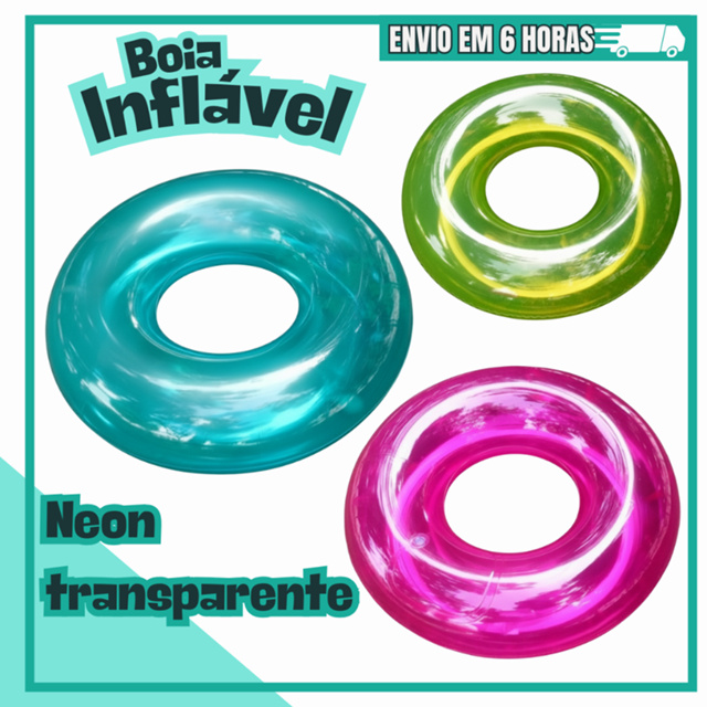 Boia Inflável Transparente 85cm – Praia e Piscina | Rosa, Azul e Verde BENEFÍCIOS: Aproveite o verão com estilo e diversão! A boia inflável transparente de 84cm é perfeita para curtir momentos relaxantes na praia ou piscina, trazendo cores vibrantes e um visual moderno que chama atenção. Seu tamanho de 84cm é ideal para a criançada, adolescentes e até adultos, garantindo a diversão em família. Seu design transparente e suas cores modernas trazem estilo e beleza. A boia é feita em PVC leve, resistente e durável, fácil de inflar. 🏷️ Marca: PETRIN 🛠️ Material: PVC Resistente 📏 MEDIDAS: Diâmetro de 85cm ℹ️ IMPORTANTE: Compra Segura Com Garantia Shopee ✅ Somos Vendedores Indicados Pela Shopee. ✅ Enviamos dentro de 6 horas úteis.✅