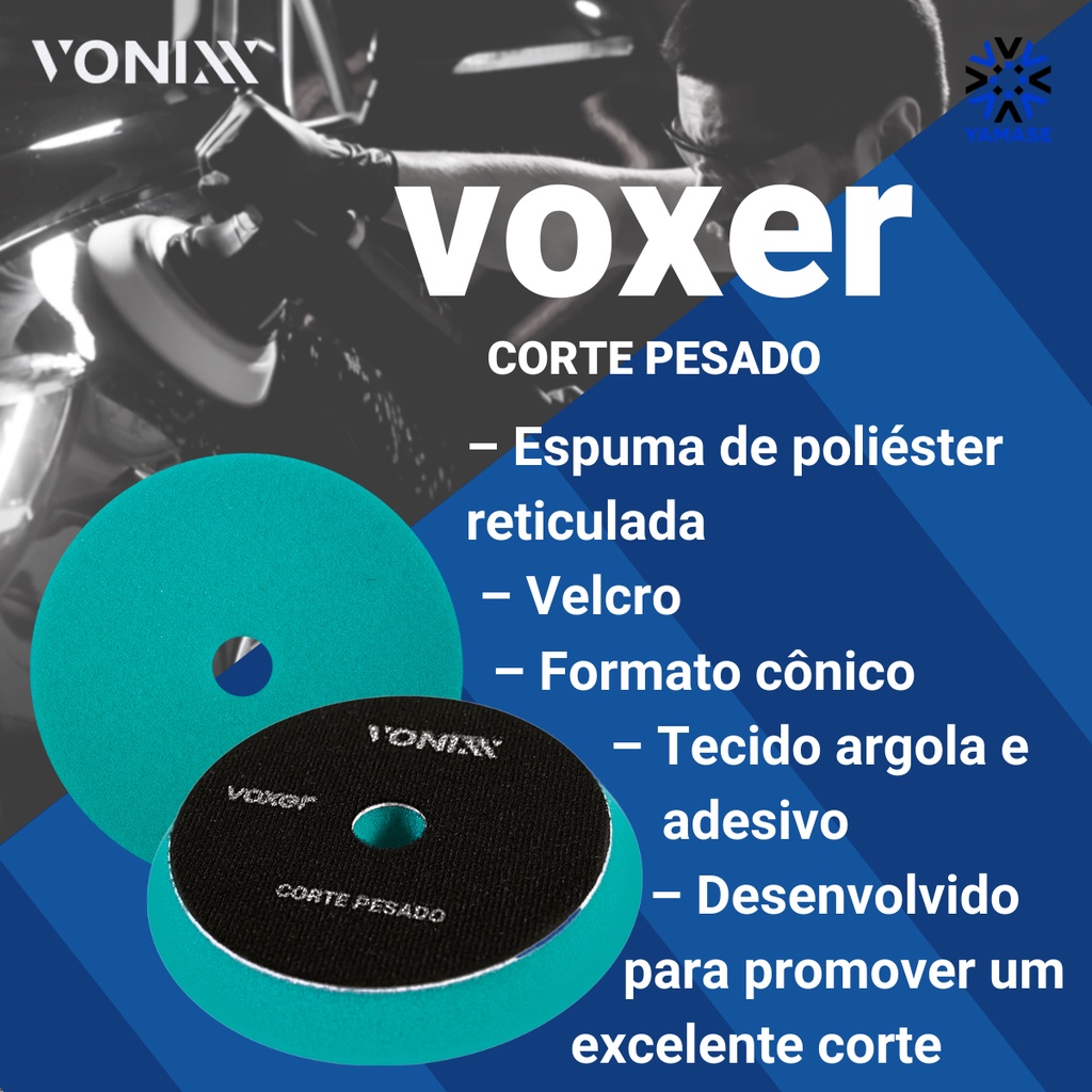 BOINA VERDE VOXER CORTE PESADO 3 POLEGADAS DESCRIÇÃO: Boina Voxer Corte Pesado foi desenvolvida para promover um excelente poder de corte com alto nível. Sua espuma possui maior abrasividade e remove facilmente os riscos severos, promovendo um excelente acabamento na superfície. Pode ser utilizada em máquina de roto-orbital ou rotativa.