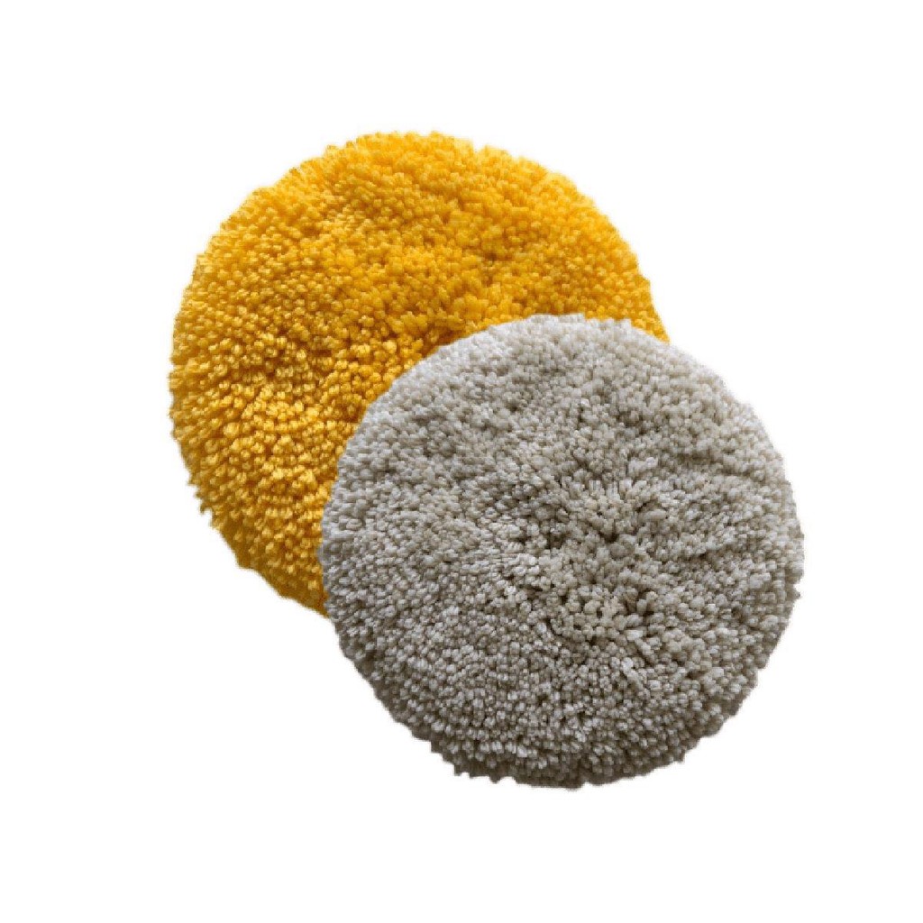 Boina para polimento automotivo de lã de carneiro natural e sintética. Tem por característica combinar 2 tipos de boina em uma única peça, ou seja, por se tratar de uma boina dupla face, tem cada uma de suas faces confeccionadas com lã de agressividades diferentes: Uma face de lã branca (Corte) e outra amarela (Refino). BOINA DE LÃ 8" DUPLA FACE MISTA AMARELA E BRANCA POLIMAX