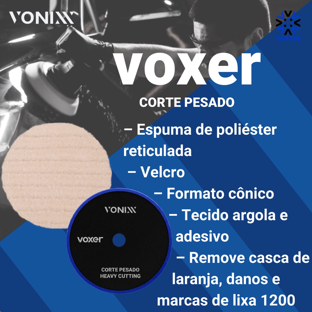 BOINA LÃ VOXER CORTE PESADO 3 POLEGADAS DESCRIÇÃO: Boina Voxer Lã de Corte Pesado foi desenvolvida para todos os tipos de vernizes, remove de casca de laranja, defeitos severos e marcas de lixa 1200. Pode ser utilizada em máquina de roto-orbital ou rotativa.