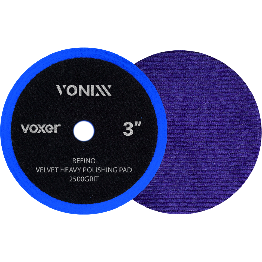 BOINA VELUDO VOXER AZUL REFINO 2500 GRIT 3 POLEGADAS DESCRIÇÃO: A BOINA VELUDO VOXER AZUL REFINO é indicada para a segunda etapa do polimento automotivo. Utilizada na etapa de refino em conjunto com politrizes roto-orbital e rotativa, é capaz de remover cascas de laranja e defeitos correspondentes a lixa de 2500 grit. CARACTERÍSTICAS: - Eficiente em remoção de marcas. - Possui acabamento boleado. - Velcro de alta aderência.