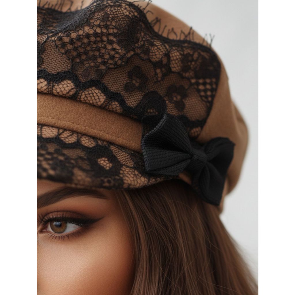 Boina Linda Feminina Com Laço Em Renda Estilo Elegante Inverno