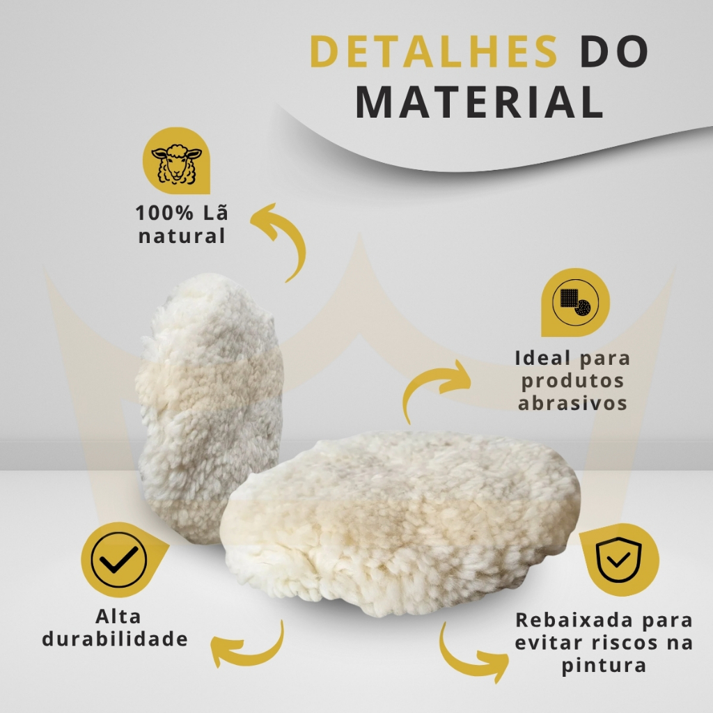 Busca corte agressivo com segurança e alto rendimento? Características do Produto: – 1 Boina de Lã Branca agressividade normal – Face Única – 7" – 1 Espuma Aplicadora (brinde) – Material: 100% lã natural – Diâmetro: 7 polegadas – Sistema de aderência – Rebaixada para evitar contato da base com a pintura Por que escolher este produto: – Corte agressivo com brilho intenso – Alta durabilidade e rendimento – Evita riscos por contato da base dura – Balanceamento mecânico para trabalho seguro – Flexível, ideal para superfícies curvas – Indicada para uso com politriz elétrica ou orbital – Perfeita para oficinas de funilaria e pintura Dicas de Uso: – Use apenas um produto por boina – Velocidade ideal: até 1400 RPM – Mantenha sempre a boina plana na superfície – Remova o excesso de pelos antes do primeiro uso – Necessário adaptador para politriz Perguntas Frequentes: – Posso usar essa boina para acabamento? Não. Esta boina é indicada exclusivamente para corte. – Acompanha suporte? Não. É necessário suporte compatível com sistema de velcro. – Serve em politriz roto-orbital? Sim, desde que tenha suporte adequado e rotação compatível. Corte profissional com segurança e acabamento limpo, sem marcas!