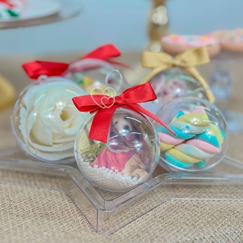 CARACTERÍSTICA DO PRODUTOJá pensou em presentear ou até mesmo decorar a árvore de natal com bolas de acriilico recheadas de docinhos?! A embalagem vem com 5 unidades de bola de acrílico com 6cm de diametro. O acrílico transparente permite que todos os docinhos fiquem visiveis, deixando assim ainda mais lindos e apetitosos! Preencha com biscoitinhos caseiros, balinhas de goma coloridas, mini bombons, lascas de chocolate, mini brownies a criatividade é quem manda! Surpreenda nesse natal, decore com fitas de cetim, adesivos e muito maisINFORMAÇÕES ADICIONAISDimensões aproximadas do produto: Diamêtro: 6,5cm Quantidade: 5 Unidades