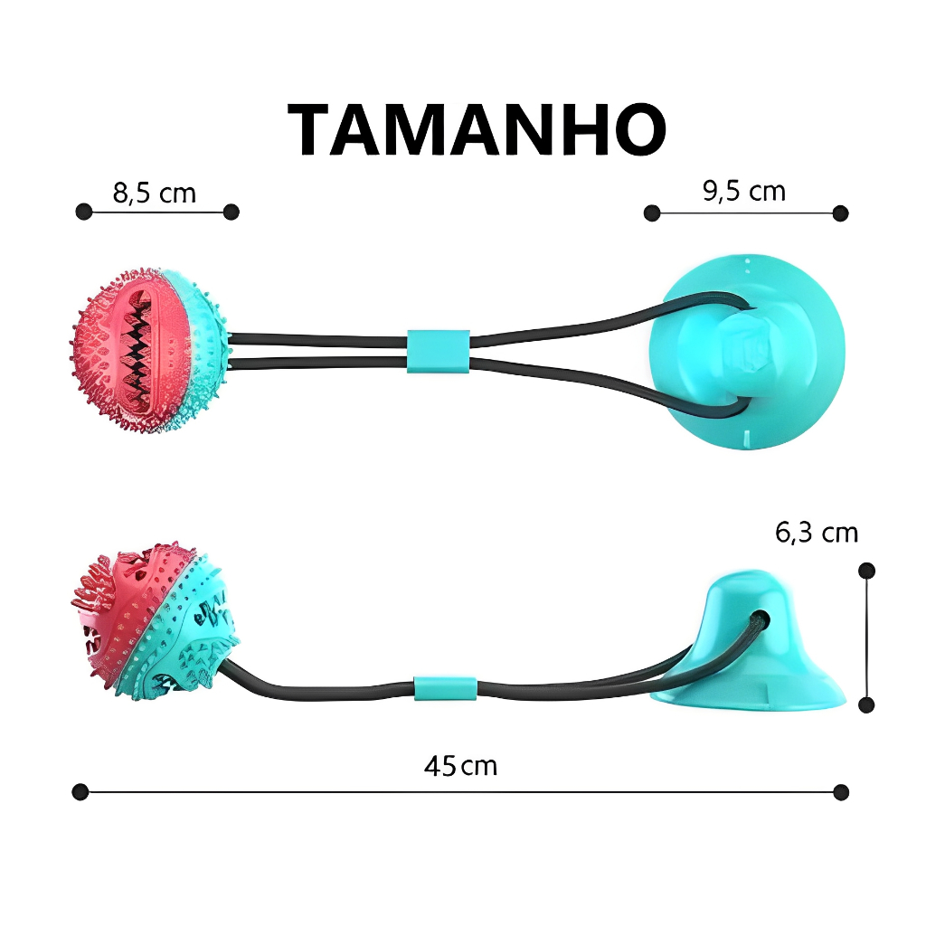 Bola De Brinquedo Para Pet Cachorro Porta Petisco Com Ventosa Gruda Chão Parede Mordedor Pet Ball Por favor, leiam com atenção o anúncio. Isso ajudará a ter certeza do que estão comprando. Produto: 01 (UM) Brinquedo Cabo de Guerra com Ventosa Gruda no Chão para Cães O brinquedo Cabo de Guerra com Ventosa para Cães é fabricado com material resistente de alta qualidade, excelente para distrair e entreter seu pet, evitando que ele destrua móveis, plantas, sapatos ou outros objetos. Lembramos que nenhum brinquedo é 100% indestrutível. BENEFÍCIOS: Vilão do tédio Previne o estresse Mantém a forma e o peso Desafia a mente do cachorro Melhora a mastigação Melhora o comportamento Porte: Pequeno e Médio Com esse brinquedo interativo, seu cachorro poderá brincar sozinho enquanto você está ocupado! Características: Diminuição do estresse Ração de forma lúdica Pode brincar sozinho Higieniza os dentes Material não tóxico e resistente Fixação fácil e versátil ATENÇÃO: É importante sempre verificar se o brinquedo escolhido está de acordo com o porte do seu pet e se é resistente o suficiente para ele. Nenhum brinquedo é indestrutível. Retire ao notar sinais de deterioração. Não permita que seu animal mastigue ou engula partes do produto. Não permita que seu animal de estimação use um produto danificado. Qualquer dúvida, é só mandar uma mensagem!
