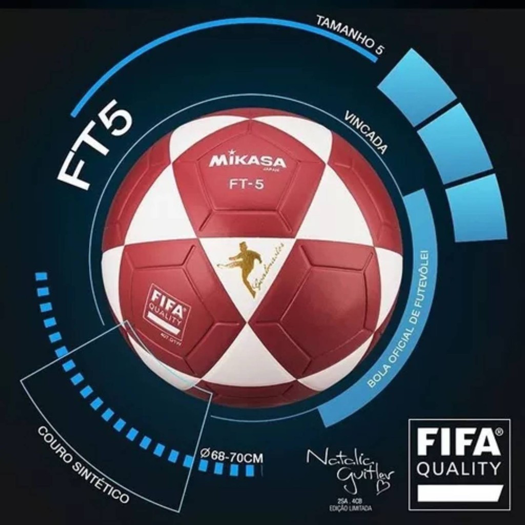 Bola de Futevôlei Mikasa FT-5 Edição Natalia Guitler Vermelho e Branco Oficial