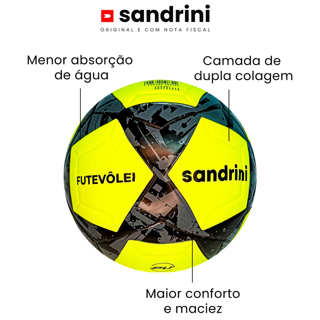 REF 2063 Bola Futevôlei Oficial Sandrini – Desempenho e Controle nas Areias A Bola de Futevôlei Oficial Sandrini foi desenvolvida para atletas que buscam excelência no desempenho dentro das quadras de areia. Com acabamento de alta qualidade e costura reforçada, ela proporciona controle preciso, toque suave e durabilidade mesmo nas condições mais intensas de jogo. Seu design moderno e exclusivo da marca Sandrini garante visibilidade e personalidade durante as partidas. Especificações Técnicas do Produto - Marca: Sandrini - Modelo: Futevôlei Oficial- Indicado para: Futevôlei, areia, praia - Material: PU sintético resistente com acabamento texturizado - Peso oficial: Aproximadamente 430g - Circunferência: 68 – 70 cm - Câmara: Butil, que mantém a pressão interna por mais tempo - Costura: Reforçada, ideal para resistência em uso frequente - Características: Toque suave, controle preciso e excelente resposta em jogadas técnicas - Válvula removível e lubrificada - Cuidado com a calibragem FAQ – Perguntas Frequentes A bola é oficial para campeonatos? Sim, a Bola Sandrini atende às especificações oficiais para práticas e torneios de futevôlei. Posso usar em quadras molhadas? Sim, seu material é resistente à umidade, ideal para jogos na areia, inclusive em ambientes úmidos. Acompanha bomba para encher? Não. Sobre a Empresa: A Sandrini, com sede em São João da Boa Vista - SP e uma filial em Andradas - MG, é referência em moda, dedicada a oferecer conforto, qualidade e total satisfação aos clientes. Reconhecida por sua excelência, a empresa conquistou o prêmio de maior loja do marketplace em 2022. ENVIO EM ATÉ 24 HORAS. PRODUTO ORIGINAL COM NOTA FISCAL. DESDE 2011 NO MERCADO. NÃO VENDEMOS FALSIFICAÇÕES.