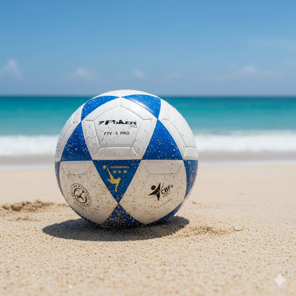 Bola de Futevôlei Poker Vulcanizada Rio Oficial PU Branco e Azul - Único
