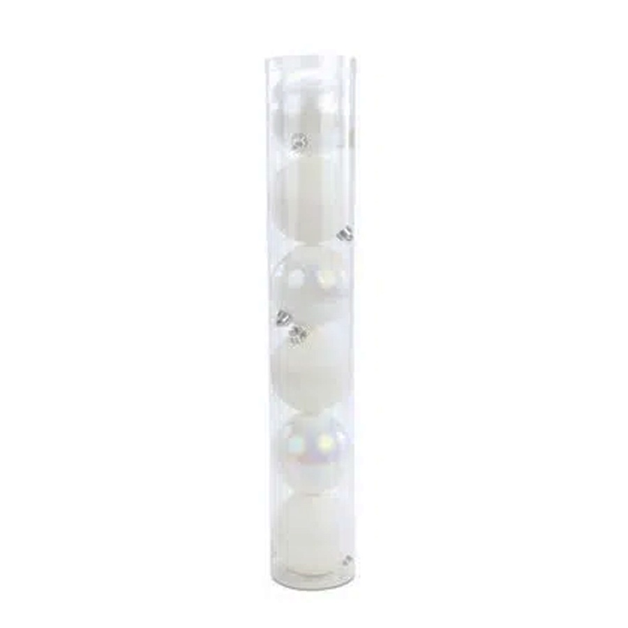 Bola de Natal em Tubo - Liso/Glitter/Nacarado Branco - 10cm - 6 unidades - Cromus - Rizzo
