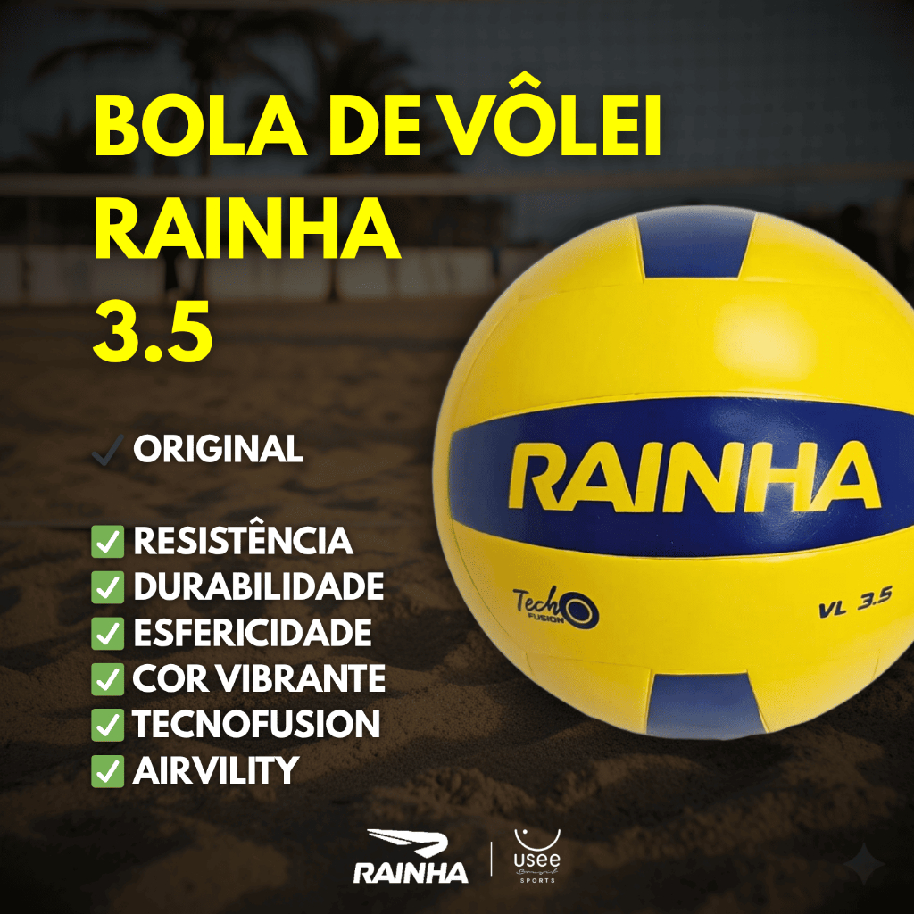 Bola de Volei 3.5 Rainha - INFORMAÇÃO IMPORTANTE: O acabamento do material (liso ou texturizado) pode variar de acordo com a própria marca. Isso porque a coleção passou por recente atualização e ambas estão disponíveis para venda. No entanto, esta condição não compromete a originalidade ou desempenho do produto. Ideal para quem busca performance e estilo nas quadras, ela é perfeita para destacar seu jogo entre os amigos. Fabricada em PVC de alta qualidade, oferece resistência e durabilidade excepcionais. Com tecnologias avançadas, mantém a esfericidade e o formato original por muito mais tempo, mesmo após diversas partidas. Sua cor vibrante facilita a visualização durante o jogo, tornando-a a escolha preferida dos jovens atletas. Características: - Fabricada em PVC de alto desempenho, garantindo resistência e durabilidade excepcionais. - Estrutura que mantém a esfericidade da bola, preservando o formato original por muito mais tempo. - Cor vibrante que facilita a visualização durante as partidas, mesmo em ambientes com pouca luz. - Perfeita para quem busca aumentar sua performance no vôlei, seja em treinos ou partidas informais. - Atende aos padrões exigidos para jogos amadores e competitivos. Detalhes do produto: - Composição: PVC. - Tipo de Câmara: Airvility. - Tecnologia: Tecnofusion. - Diâmetro: 66-67 cm. - Peso: 260-280g. A Bola de Volei 3.5 Rainha pode ser encontrada aqui na Usee Brasil! Sobre a Usee Brasil: A Usee Brasil é uma empresa brasileira que oferece uma variedade de produtos de alta qualidade, desde roupas e acessórios até itens para casa. Tenha uma experiência conosco!