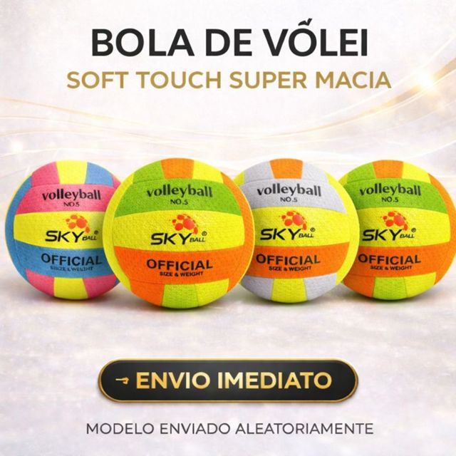 | Bola de Vôlei Soft Touch Super Macia para Treinamentos Praia E Quadra este produto | R$ 26,99 | 16% | 4.8/5 | — |