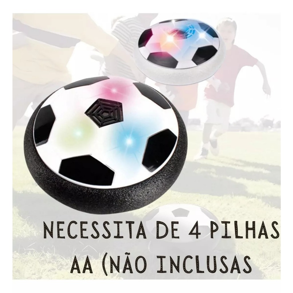Bola Flutuante Flat Ball Futebol Football Flat Ball é uma bola para jogar futebol de uma maneira diferente, ideal para diversão dentro de casa. O material macio utilizado na lateral do disco protege móveis e paredes. Com uma base de ar que permite que o Flat Ball deslize, as crianças podem se divertir entre dribles e passes com os amigos. Pode-se jogar futebol, hockey, boliche, incentivando a criatividade. - Restrição de Idade: Não recomendável para menores de 3 anos por conter peças pequenas que podem ser engolidas. - Composição / Material: Plástico MEDIDAS: altura: 5cm largura:15cm UTILIZA 4 PILHAS AA (NÃO INCLUSAS)