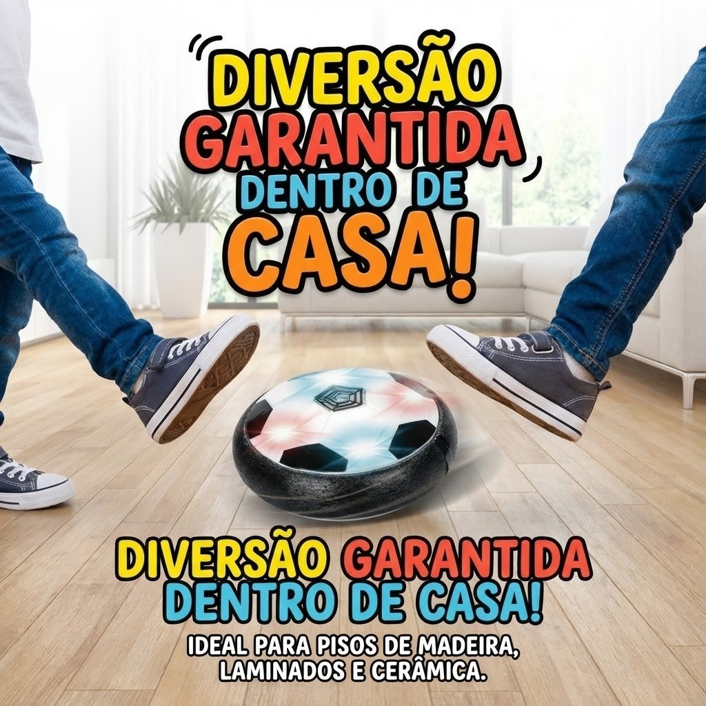 Bola Flutuante Flat Ball Futebol Indoor Com Luz LED Infantil Para Brincar Dentro De Casa Kizumba A Bola Flutuante Flat Ball é o brinquedo ideal para diversão dentro de casa, proporcionando partidas animadas de futebol sem riscos de danificar móveis ou objetos. Desenvolvida para deslizar suavemente sobre superfícies lisas, ela flutua graças ao sistema de ar interno, permitindo chutes rápidos e jogadas dinâmicas. Seu design com bordas em espuma protege paredes e pessoas, tornando a brincadeira segura para crianças e adultos. Com luzes LED integradas, a Flat Ball transforma qualquer ambiente em um campo de futebol interativo, estimulando coordenação motora, reflexos e atividade física mesmo em espaços reduzidos. Especificações Técnicas: • Tipo: Bola flutuante para uso interno • Sistema: Flutuação por ar • Iluminação: Luzes LED • Material: Plástico resistente com borda em espuma • Uso indicado: Ambientes internos • Superfícies compatíveis: Piso liso, cerâmica, madeira e laminados • Cor: Branco e Preto • Alimentação: Pilhas (não inclusas) Dimensões: • Diâmetro: 18 cm • Altura: 7 cm FAQ (Perguntas Frequentes): 1. Pode ser usada dentro de casa? Sim, foi desenvolvida especialmente para uso em ambientes internos. 2. Estraga móveis ou paredes? Não, possui bordas em espuma que protegem contra impactos. 3. Funciona em qualquer piso? Funciona melhor em superfícies lisas como cerâmica, madeira e laminado. 4.Possui luzes? Sim, conta com luzes LED que acendem durante o uso. Conteúdo da Embalagem: • 01 Bola Flutuante Flat Ball Importante: Valor Unitário Imagens Meramente Ilustrativas Não nos responsabilizamos pelo mau uso do produto