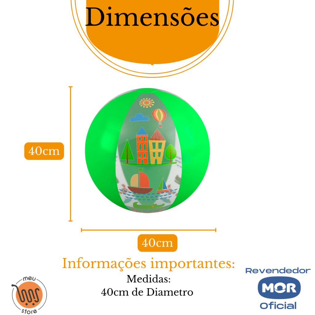 BOLA INFLAVEL 40CM MOR PRODUTO ORIGINAL A PRONTA ENTREGA Seja dentro de casa, na praia, na piscina ou no acampamento a Bola Inflável promete bons momentos de diversão e lazer! Disponível nas cores azul claro, laranja e verde, elas medem 40cm de diâmetro e são recomendadas para crianças acima de dois anos. Para aumentar sua vida útil, acompanham adesivo para reparo. Contém uma câmara de ar independente e uma válvula de segurança. Com estampa de motivos urbanos e marítimos, podem ser levadas desinfladas para qualquer lugar, ocupando pouco espaço e garantindo a diversão da garotada. Atenção! Este não é um equipamento salva-vidas. Nunca deixe crianças sozinhas perto da água sem supervisão de um adulto. Especificações MATERIAL: PVC TAMANHO : 40CM TAMANHO : 40CM DIAMETRO PESO: 0,50G MOR lá! Bem-vindos à MOR! Uma empresa brasileira, que tem como vocação criar soluções inovadoras e de qualidade aos seus consumidores. Nascida no município de Santa Cruz do Sul, a MOR começou como uma empresa familiar, que fabricava produtos para apicultura em uma pequena metalúrgica, no início dos anos 60. Ao longo dos seus 60 anos de história, a empresa cresceu e se consolidou no mercado de produtos para casa, camping e lazer. Hoje, esses produtos fazem parte da vida e história de muitos brasileiros, como as piscinas, cadeiras, churrasqueiras, varais, escadas, térmicos e isotérmicos. Totalizando um mix de mais de 1.600 códigos, divididos em 10 famílias de produtos.