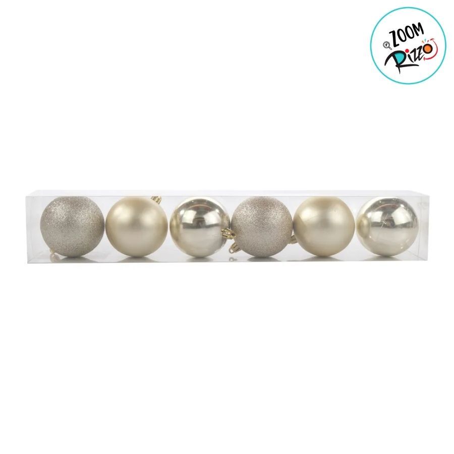 Bolas de Natal em Tubo - Champagne Fosco com Glitter - 5x5cm - 6 unidades - Cromus - Rizzo