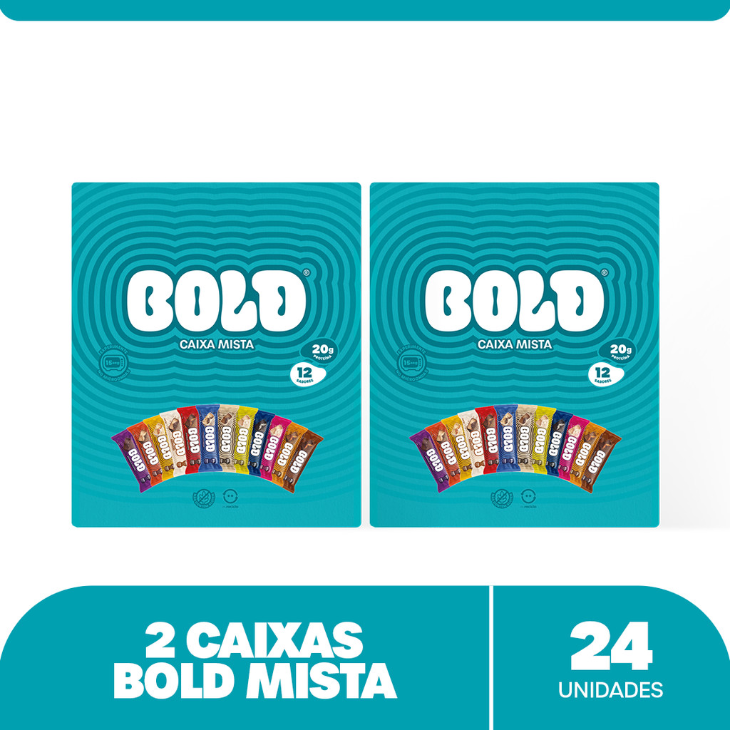 Se você tivesse que escolher entre fazer um lanche gostoso, prático ou saudável, qual escolheria agora? Na BOLD você pode ter tudo isso! E pra ficar melhor, além de barras de proteínas deliciosas em uma grande variedade de sabores, todos nossos produtos são livres de adição de açúcar! Nesse combo você leva duas caixas BOLD Mista. Descubra todos os nossos sabores e encontre seu favorito! Com a correria do dia a dia, nem todas as pessoas têm tempo ou acham prático consumir ovos, leite ou whey para bater sua meta de proteína diária. Pensando nisso, a BOLD traz uma solução prática e deliciosa. Nossas barras de proteína possuem uma textura macia e um recheio generoso que satisfazem sua vontade de comer um doce, sem a culpa dos açúcares e calorias não funcionais. Cada barra é ideal para quem pratica atividades físicas e busca energia e recuperação muscular. Leve sua BOLD para qualquer lugar: no trabalho, na academia, em viagens ou até mesmo em casa, e tenha sempre um snack nutritivo à mão. Para garantir a qualidade dos nossos produtos, compre exclusivamente na nossa Loja Oficial. Assim, você terá a certeza de receber barras de alta qualidade e originais. Experimente colocar sua BOLD por 15 segundos no micro-ondas para uma experiência ainda mais deliciosa! Especificações Técnicas: Você pode encontrar todas as informações sobre os ingredientes e a tabela nutricional de cada sabor nos anúncios de sabores únicos. Qualquer dúvida, estamos à disposição pelo canal de atendimento da plataforma.