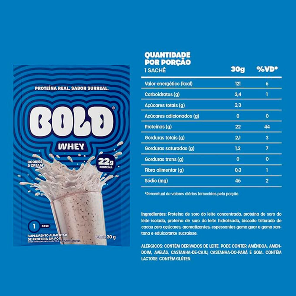 Bold Whey Protein – Cookies & Cream ? Experimente Bold Whey Protein com sabor incrível de Cookies & Cream e eleve seu desempenho físico a um novo patamar! Com 22g de proteína por porção, este suplemen