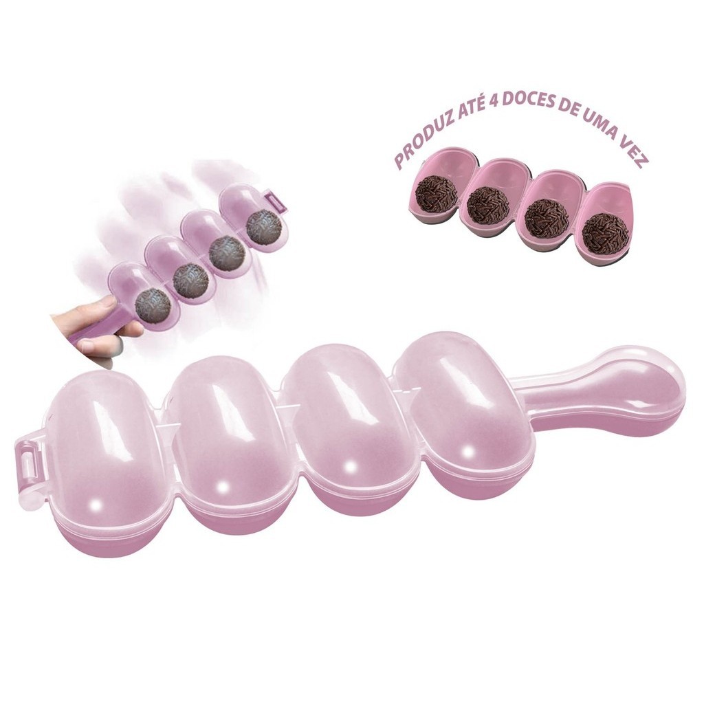 2 Boleador de Doces / Molde para Sushi ou Brigadeiros ! Molde Boleador para Brigadeiro e Doces! Você consegue enrolar confeitos diretamente no Boleador, até 4 de uma única vez. IDEAL PARA: Doces, Brigadeiros Redondos para utilizar confeito. Tem 4 espaços para colocar 4 de uma única vez. Utilizado para bolear as peças de sushi com muita praticidade. sucesso para bolear brigadeiros, de maneira prática e sem sujeita. Coloque o granulado no boleador e um pouquinho de massa do brigadeiro já gelada, fazer movimento para frente e para trás conforme vídeo e pronto, brigadeiro lindo e padronizado Material: Dimensões: 21 x 7 x 4 cm Plástico atóxico livre de BPA.