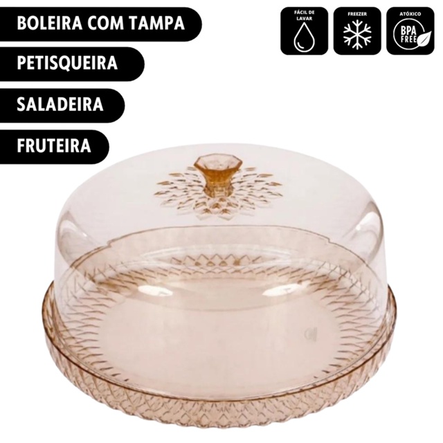 | Boleira Acrílica Glamour Ambar Porta Bolo Plasútil este produto | R$ 43,04 | — | 4.9/5 | 1 |
