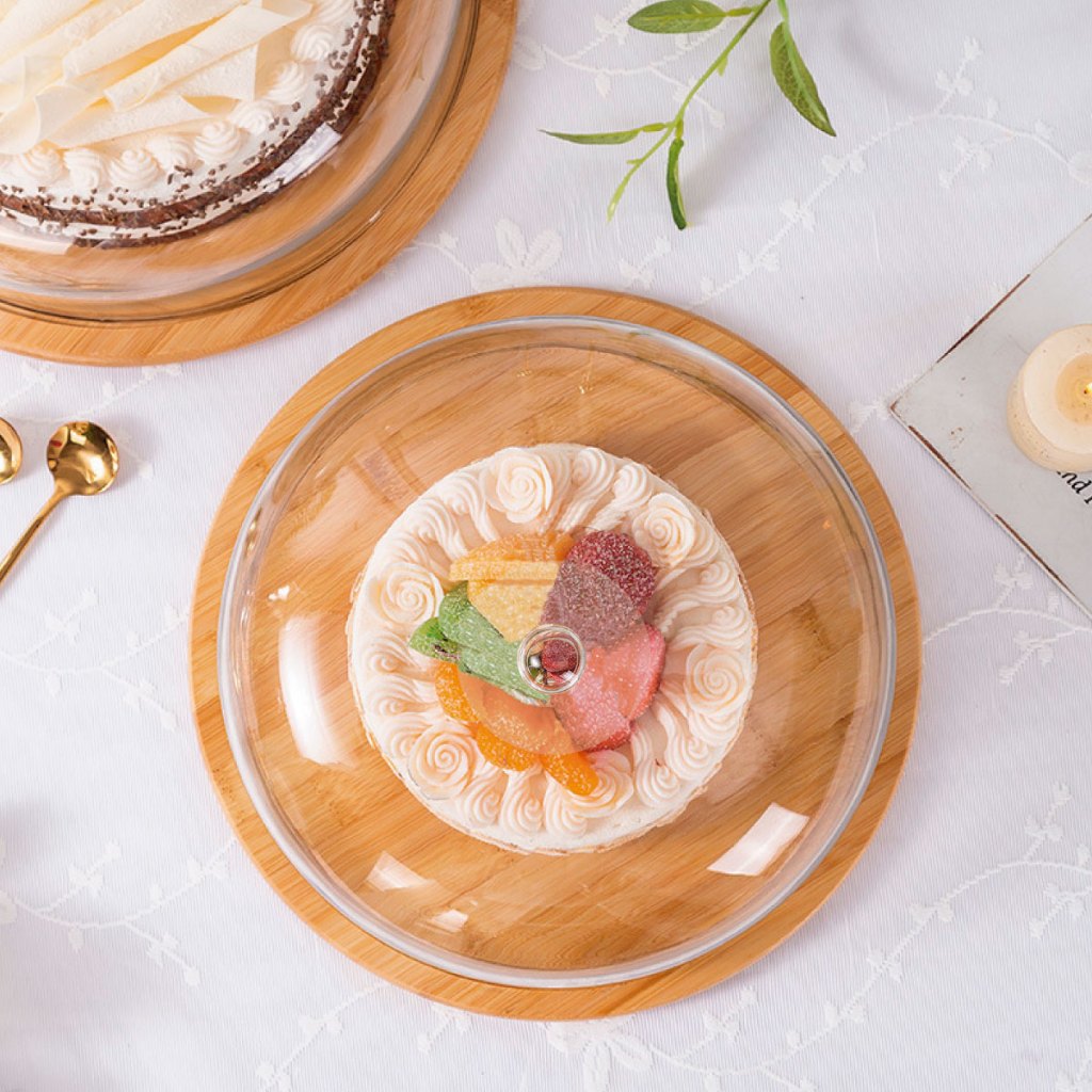 Boleira Com Tampa Acrílico Porta Bolos Doceira De Bambu Grande Cúpula Torta Pão Suporte Confeiteiro