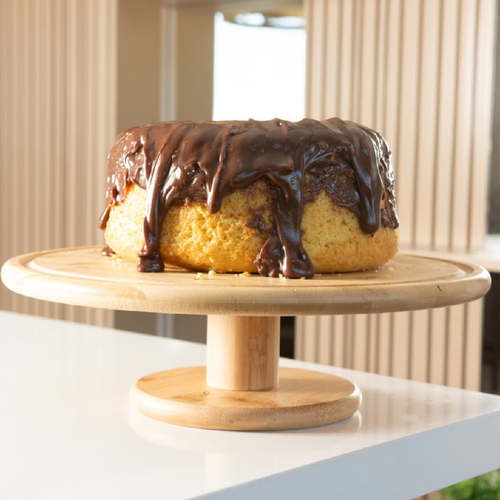 Boleira de Bambu Redonda Prato de Bolo Com Pé Sense Ou Confeitaria Cozinha Café da Manhã