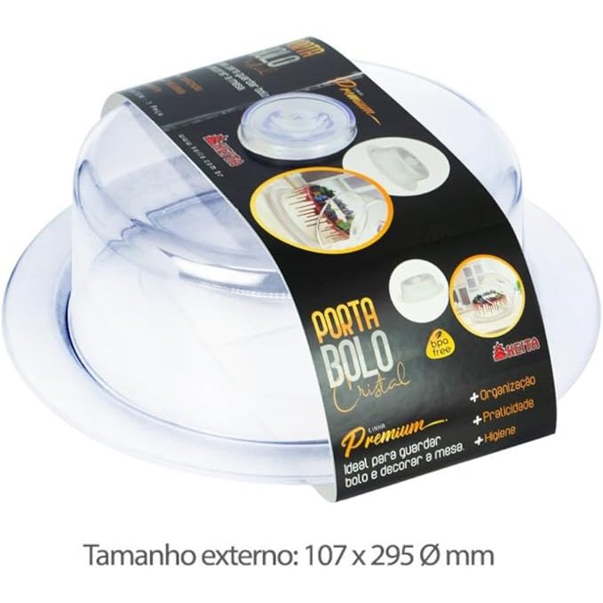 Escolha o Porta Bolos KEITA Este porta bolos é a escolha perfeita para quem valoriza a qualidade, a elegância e a praticidade. Não importa se é uma celebração especial ou um simples café da tarde, o Porta Bolos KEITA garante que suas sobremesas sejam mantidas frescas e apresentadas com estilo. Características Principais: - Design Exclusivo: O Porta Bolos KEITA apresenta um design sofisticado que vai além da mera funcionalidade. Com linhas elegantes e detalhes cuidadosamente trabalhados, ele é uma verdadeira obra de arte para a sua cozinha. - Qualidade Premium: Fabricado com materiais de alta qualidade, este porta bolos é resistente e durável. - Ampla Capacidade: Com espaço generoso, acomoda bolos de diversos tamanhos, tortas e sobremesas. Perfeito para compartilhar momentos especiais com amigos e familiares. - Fácil de Limpar: A limpeza é simples, graças ao revestimento interno removível. Você pode lavá-lo à mão ou na máquina de lavar louça para maior comodidade. - Praticidade Inteligente: Possui uma tampa de encaixe seguro que mantém seus bolos frescos e protegidos de poeira e odores. Além disso, a alça ergonômica facilita o transporte. Especificações Técnicas: Material: Plástico Premium Dimensões: 23 cm diâmetro x 10 cm Peso: 350g