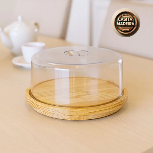 Boleira de Madeira e Tampa Acrílica Porta Bolos Doces Tortas Grande 30 cm PREMIUM