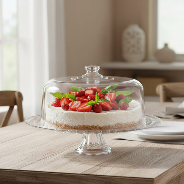 Boleira Vidro Pé Tampa Acrílica Verona Bolos Sobremesas Ruvolo