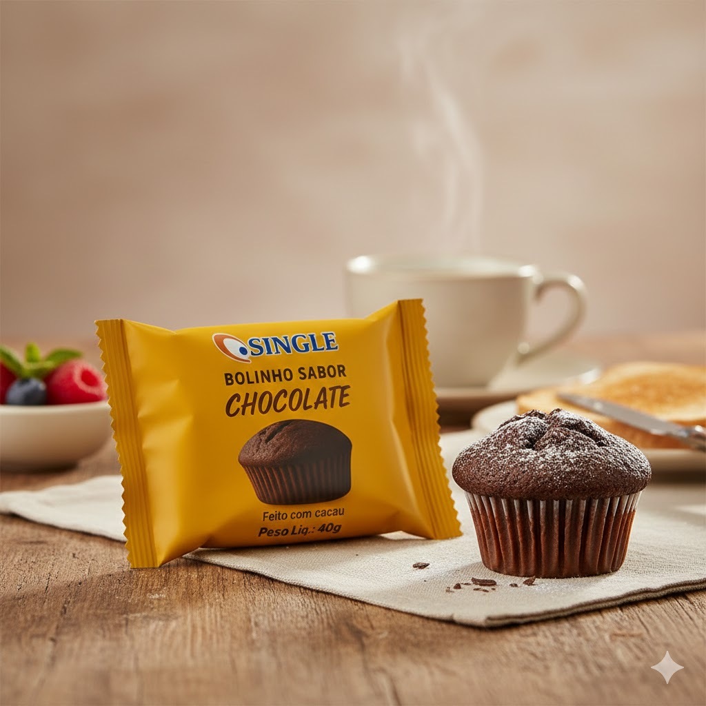 Bolinho de Chocolate - Caixa com 80 unidades de 40g - Mini bolo - Marca Single - Cupcake - Muffins