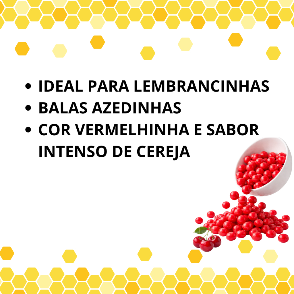 Balas Azedinha Sabor Cereja 500g – Bolix 🍒 😍 As Balas Azedinha Bolix são mastigáveis, coloridas e vêm com aquele sabor marcante de cereja que agrada crianças e adultos. Ideais para festas, lembrancinhas, consumo diário ou até para revenda, trazendo muito mais sabor e alegria em cada embalagem de 500g. 🍬 O que é o produto? Balas mastigáveis azedinhas sabor cereja, embaladas individualmente, pacote econômico de 500g. 🎯 Para que serve? Lembrancinhas e saquinhos surpresa em festas Consumo no dia a dia Decoração de mesas de doces Revenda em docerias, lanchonetes e bombonieres 🌟 Diferenciais: Sabor intenso de cereja com toque azedinho Embaladas individualmente para maior praticidade Textura macia e divertida Pacote econômico de 500g 📦 Características Técnicas: Marca: Bolix Produto: Balas Mastigáveis Azedinhas Sabor: Cereja Peso líquido: 500g Apresentação: Pacote com balas embaladas individualmente Armazenamento: Local fresco, seco e protegido da luz solar Tabela nutricional e ingredientes disponíveis na embalagem do fabricante. ✅ Benefícios: Praticidade: embaladas individualmente Divertidas e saborosas para todas as idades Ótimas para lembrancinhas e festas infantis Sabor azedinho que conquista a todos 🎯 Indicado para: Festas de aniversário e confraternizações Kits de doces e lembrancinhas escolares Consumo no dia a dia Revenda em comércios e mercearias 📦 Entrega e Disponibilidade: Produto com pronta entrega Envio rápido e embalagem segura ⚠️ Avisos: Contém aromatizantes artificiais Contém glúten Não recomendado para crianças menores de 3 anos (risco de engasgo) Nossos produtos têm prazo de validade superior a 5 meses. Se tiver mais alguma dúvida ou precisar de mais informações, estou à disposição! 🍒✨ Garanta já as Balas Azedinhas Sabor Cereja Bolix e adoce suas festas e momentos especiais com muito mais diversão! 🛍️ Somos uma loja especializada em artigos de festa, confeitaria, embalagens, doces e guloseimas, com lojas físicas no estado de São Paulo, desde 2002.