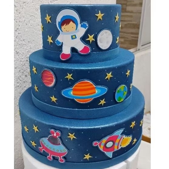 Bolo Fake Cenográfico Astronauta Azul MARINHO