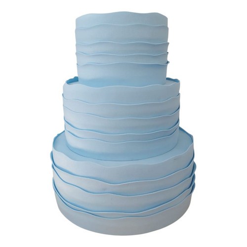 Bolo Fake Falso Azul Claro Espatulado Ruflado Camadas 19